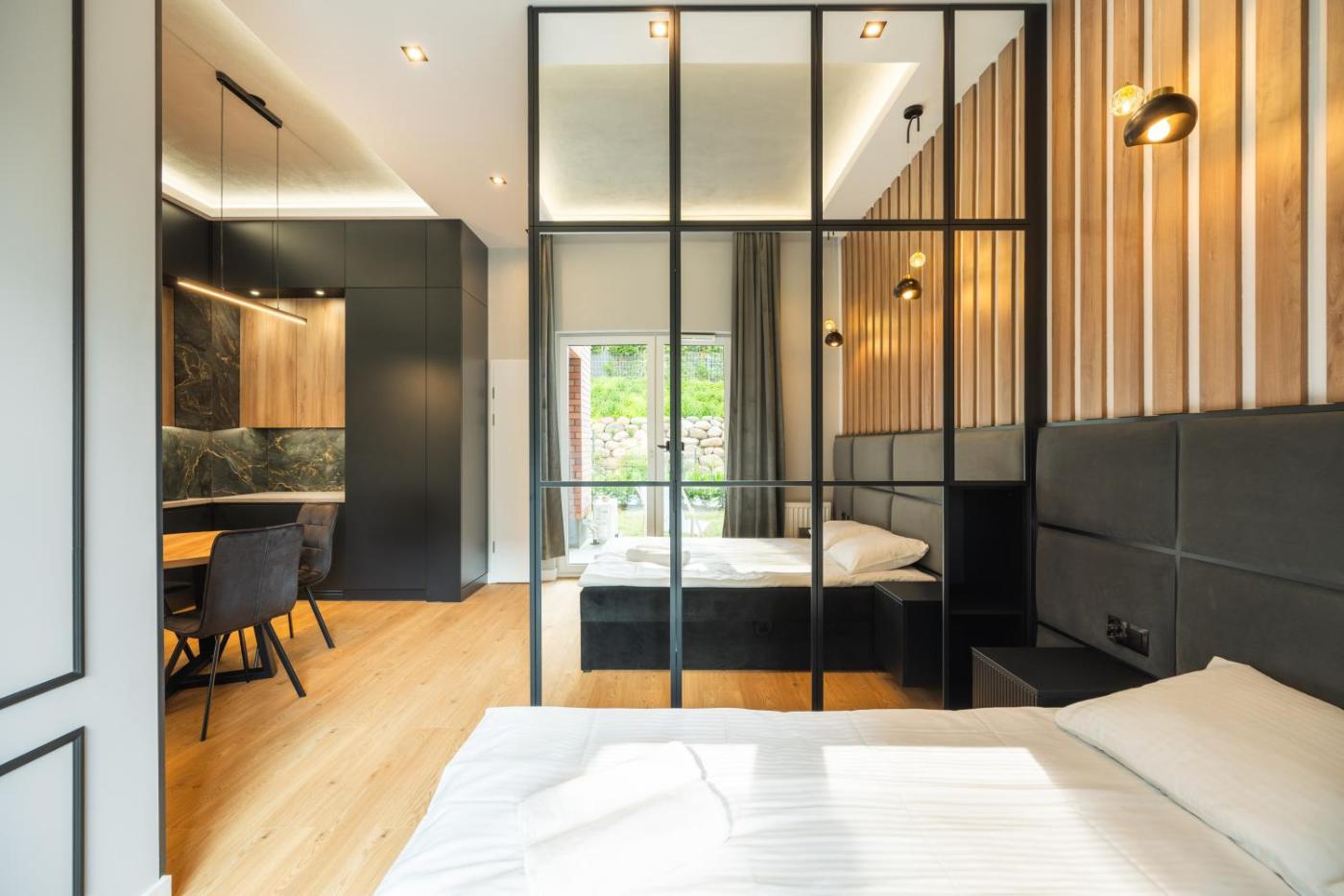 Studio. Meals can be prepared in the kitchen, which features a stovetop, a refrigerator, a dishwasher and kitchenware. This air-conditioned studio has a private bathroom, a washing machine, a dining area as well as a terrace. The unit has 2 beds. Studio - 4 osobowy. Powierzchnia pokoju ok.: 37 mkw.