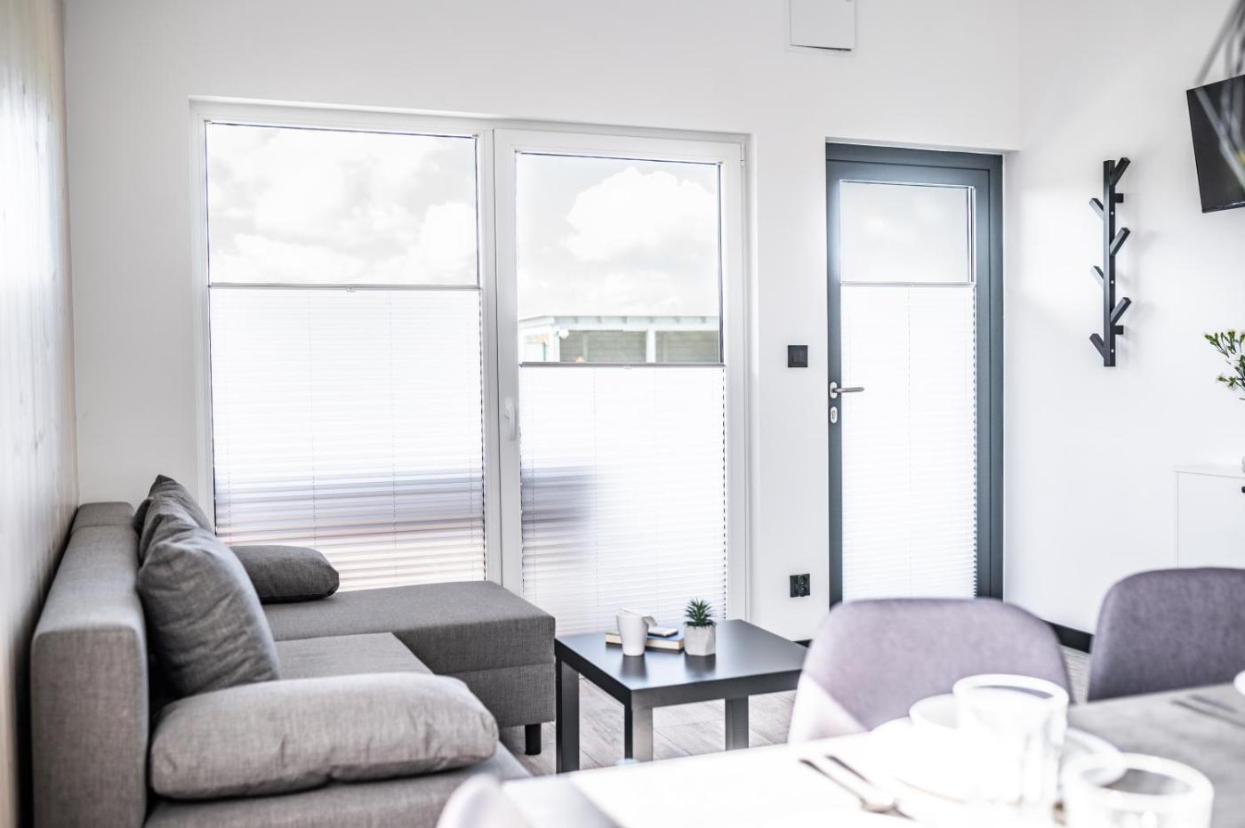 Dom z 2 sypialniami. This air-conditioned holiday home is comprised of 1 living room, 2 separate bedrooms and 1 bathroom with a shower. Guests will find a stovetop, a refrigerator, a dishwasher and kitchenware in the kitchen. The holiday home also has a barbecue. Featuring a terrace with garden views, this holiday home also offers a tea and coffee maker and a flat-screen TV. The unit offers 3 beds. Dom wakacyjny - 4 osobowy. Powierzchnia pokoju ok.: 35 mkw.
